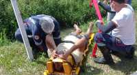 Quando os policiais chegaram, foram recebidos pelo suspeito com a arma em punho, uma espingarda artesanal calibre 20, mas ao ver a equipe ele se entregou.