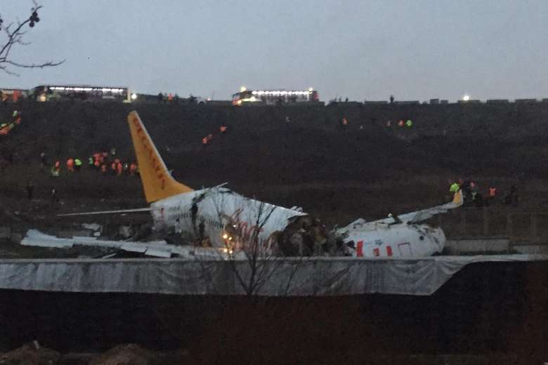 A fuselagem da aeronave, da companhia privada Pegasus, se partiu e pegou fogo depois de sair da pista do aeroporto internacional Sabiha Gökçen. Segundo imagens transmitidas pelo canal CNN-Türk, a pista estava escorregadia em razão da forte chuva que cai em Istambul.