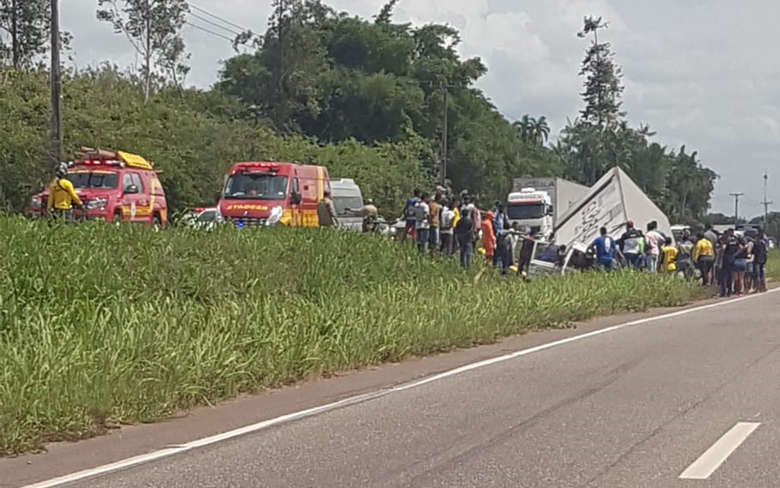Na manhã desta terça-feira (12), um caminhão tombou no Km 28 da BR-316, próximo de Benevides. O motorista não identificado ficou preso nas ferragens do caminhão.