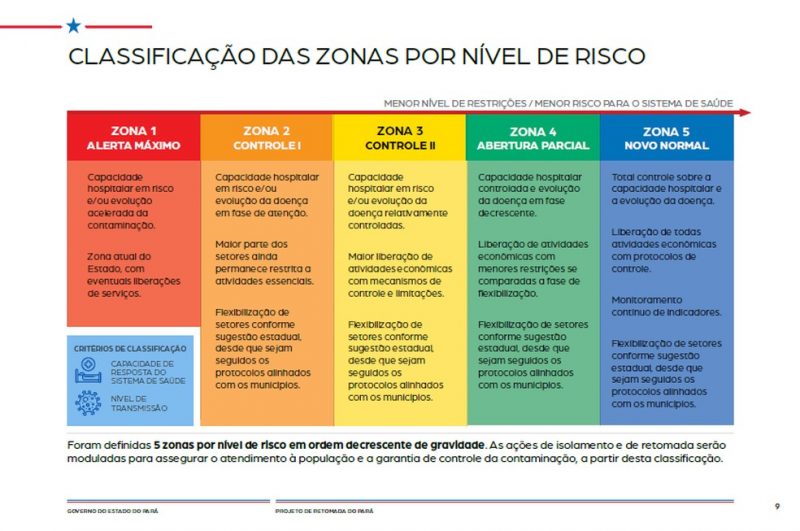 - Risco Intermediário (bandeira amarela) – Municípios paraenses com taxa de transmissão intermediária e média capacidade