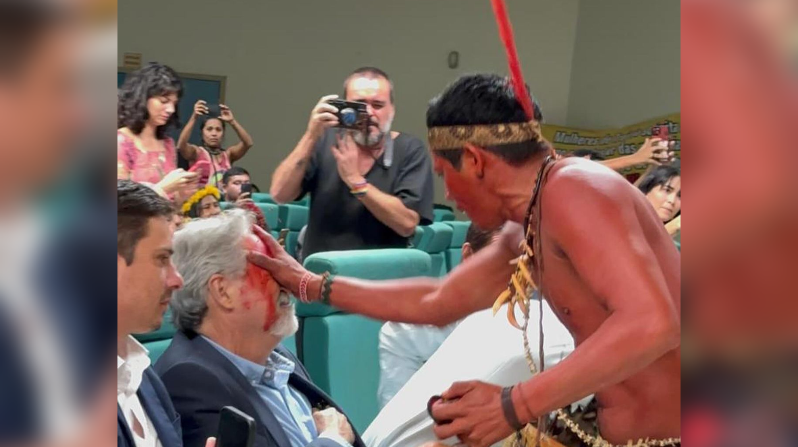 Os manifestantes do Baixo Tapajós, que é lar de 14 diferentes povos indígenas, esfregaram urucum no rosto de representes de entidades que defensoras da construção da ferrovia. Num vídeo que circula nas redes sociais, é possível ver um indígena da aldeia Muruary realizando o protesto com urucum.
