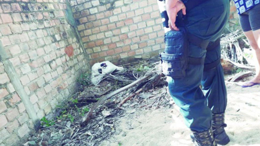 O corpo foi encontrado dentro de um saco de fibra nos fundos do quintal de um ponto comercial. A vítima estava em posição fetal e tinha perfurações de faca pelo corpo. Além disso, o corpo estava com uma borracha amarrada ao redor do pescoço.