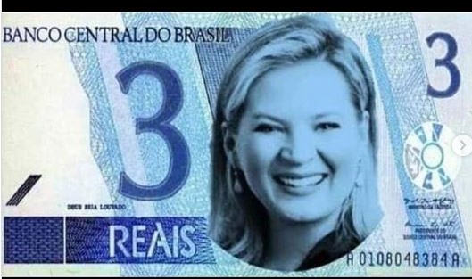 Ele usa uma foto com o rosto da deputada em uma nota de R$ 3, e afirma que Joice trabalha contra “o cara que a elegeu”, se referindo ao seu pai, o presidente Jair Bolsonaro.