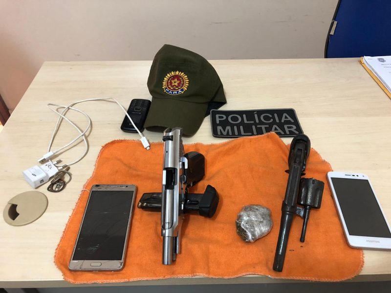 Com os dois, a polícia encontrou um revolver, calibre 38, com 4 munições, sendo duas deflagradas, uma pistola 380 Inox, com três munições intactas, três celulares e uma motocicleta.