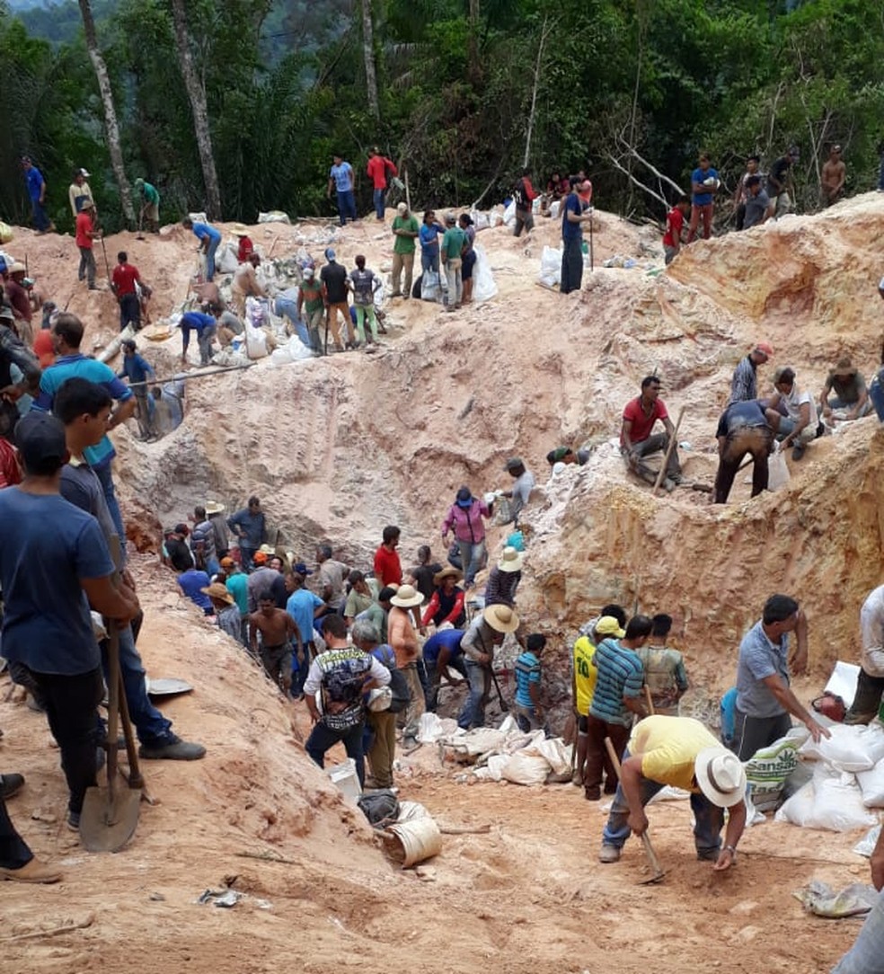 Fotos e vídeos que circulam em redes sociais mostram centenas de pessoas tentando encontrar ouro e pedras preciosas.