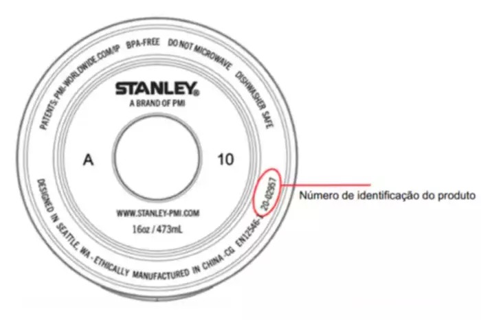 Para saber se a garrafa Stanley está incluído no recall da vez, o consumidor pode verificar o número de identificação do produto, que está localizado na parte inferior do produto. Abaixo, veja o local exato do código identificar: