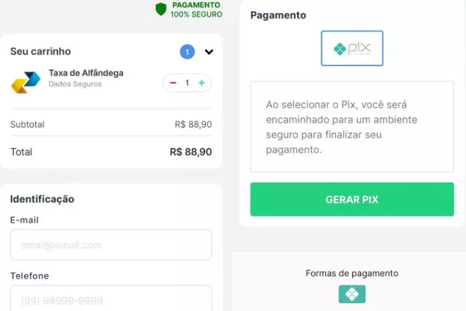 - Você recebe um SMS, geralmente do número 28578, informando que sua compra internacional foi barrada pela alfândega e precisa de um pagamento para ser liberada;