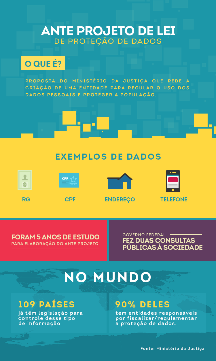 Atualmente, 109 países dispõem de leis para proteger o cidadão do uso inadequado de informações pessoais, segundo o Ministério da Justiça. Desses países, 90% contam com órgãos especializados para fiscalizar esse uso.