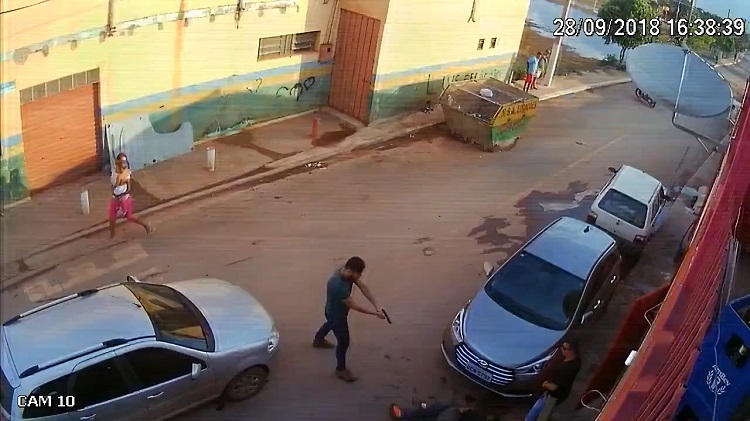 Nas imagens é possível ver Santos parado ao lado do policial, e em seguida partindo para cima do PM. Na sequência outro policial aparece e acaba baleando Willian, que cai no chão e em seguida é imobilizado.