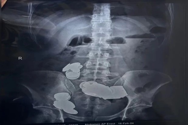 Segundo a imprensa local, o paciente foi levado por seus familiares ao pronto-socorro após apresentar vômitos e dores abdominais por mais de 20 dias. O paciente também estava perdendo peso por não se alimentar. Os familiares do paciente que alertaram que ele estava engolindo moedas de propósito e levaram uma radiografia do abdômen dele, mostrando várias áreas bloqueadas do intestino dele.