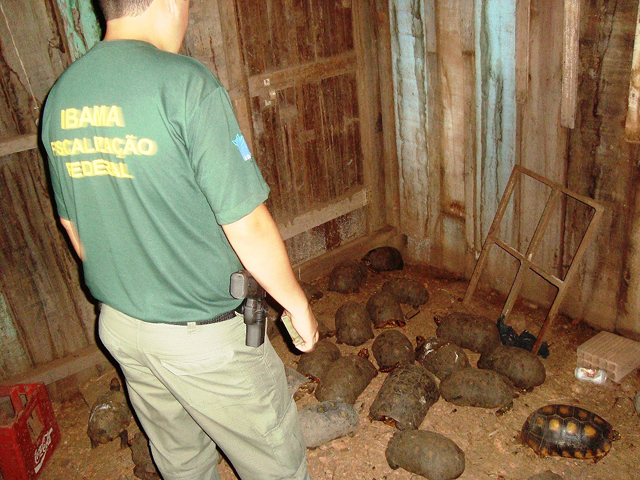De acordo com o órgão, os animais estavam escondidos em um barraco de madeira ao lado do galinheiro da sua casa, na área urbana do município. ‘Ele (o homem) comprava os jabutis pequenos por R$ 8 de colonos na zona rural, engordava e vendia por até R$ 50 cada’, disse o analista ambiental Lucivaldo Serrão, que coordenou a ação de fiscalização.