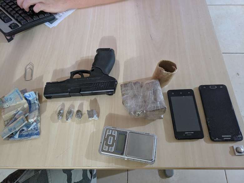 Consta ainda no Boletim de Ocorrência que Wiclas tentou se desfazer de um simulacro de arma de fogo, objeto utilizado em assaltos. Apesar disso, foram encontrados dois celulares e certa quantia em dinheiro com Thiago. Os dois jovens têm passagem por tráfico e, quando questionados, informaram que teriam mais uma quantidade do entorpecente enterrado no quintal de casa.