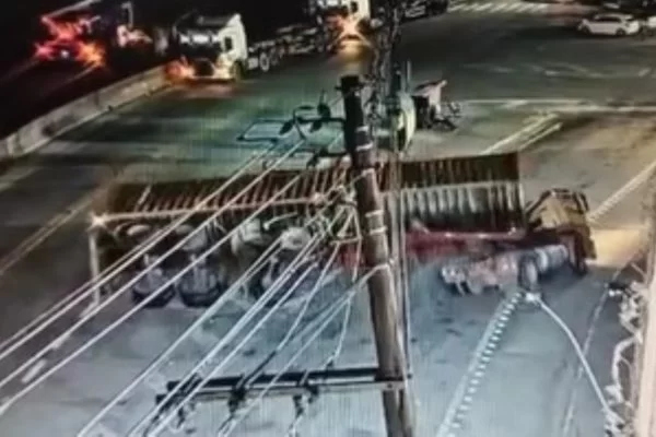Um vídeo mostra o momento em que a carreta vermelha, conduzida por Jonas dos Santos Raimundo Filho, faz o retorno para entrar na pista do sentido contrário — uma manobra irregular. O veículo passa por cima de uma sinalização do canteiro central da via e faz uma curva fechada.
