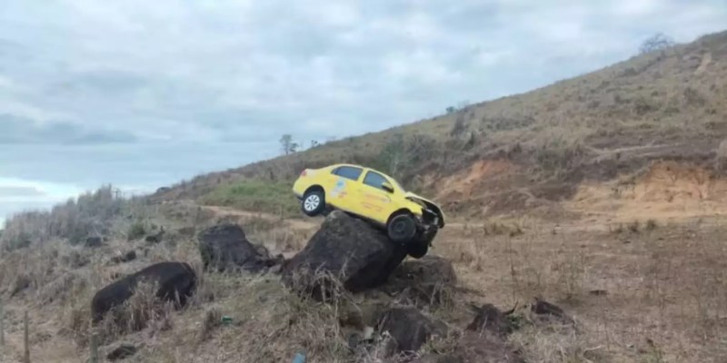 Na unidade de saúde, o condutor explicou que tentou evitar uma colisão frontal depois que outro veículo invadiu a contramão durante uma ultrapassagem. Para não bater, ele acabou passando por cima de uma cerca, atingiu um morro e, em seguida, o carro parou sobre a pedra.
