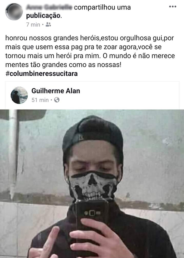 Nas redes sociais, enaltecem o massacre e a coragem dos atiradores. Alguns, inclusive, afirmam que fariam o mesmo “se tivesse uma arma e uns explosivos”. Veja: