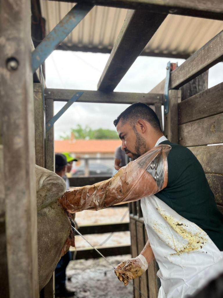 A inseminação artificial em bovinos é uma técnica de reprodução na qual o sêmen de um touro é depositado no aparelho reprodutivo da vaca por meio de instrumentos específicos.