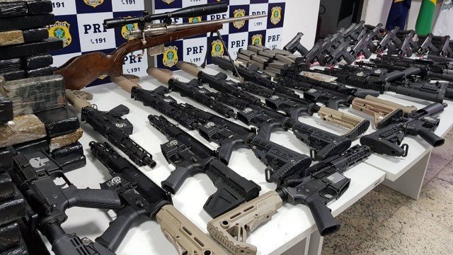 Agentes da Polícia Rodoviária Federal (PRF) apreenderam, nesta quinta-feira (6), um arsenal que estava sendo transportado, de carro, do Paraguai para a Vila dos Pinheiros, no Complexo da Maré, na Zona Norte do Rio de Janeiro/RJ.