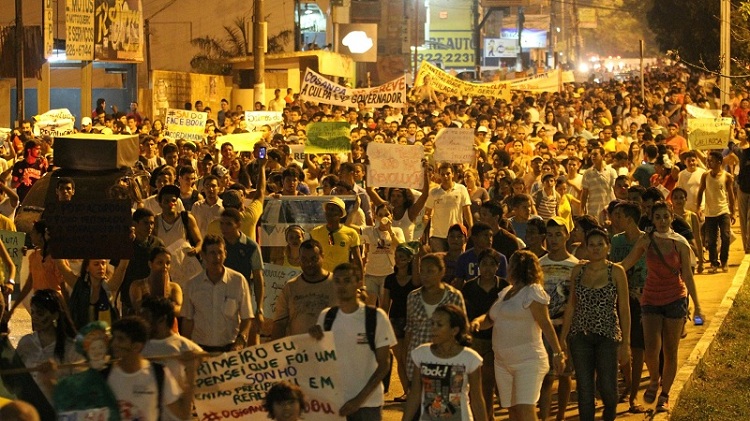 Cerca de 2.000 pessoas se reuniram em Marabá (PA) nesta quinta-feira (20) e caminharam pelas ruas do município. Durante o protesto, pediram mais investimentos em educação e saúde no Estado (Foto: Antônio Cícero/Estadão Conteúdo)