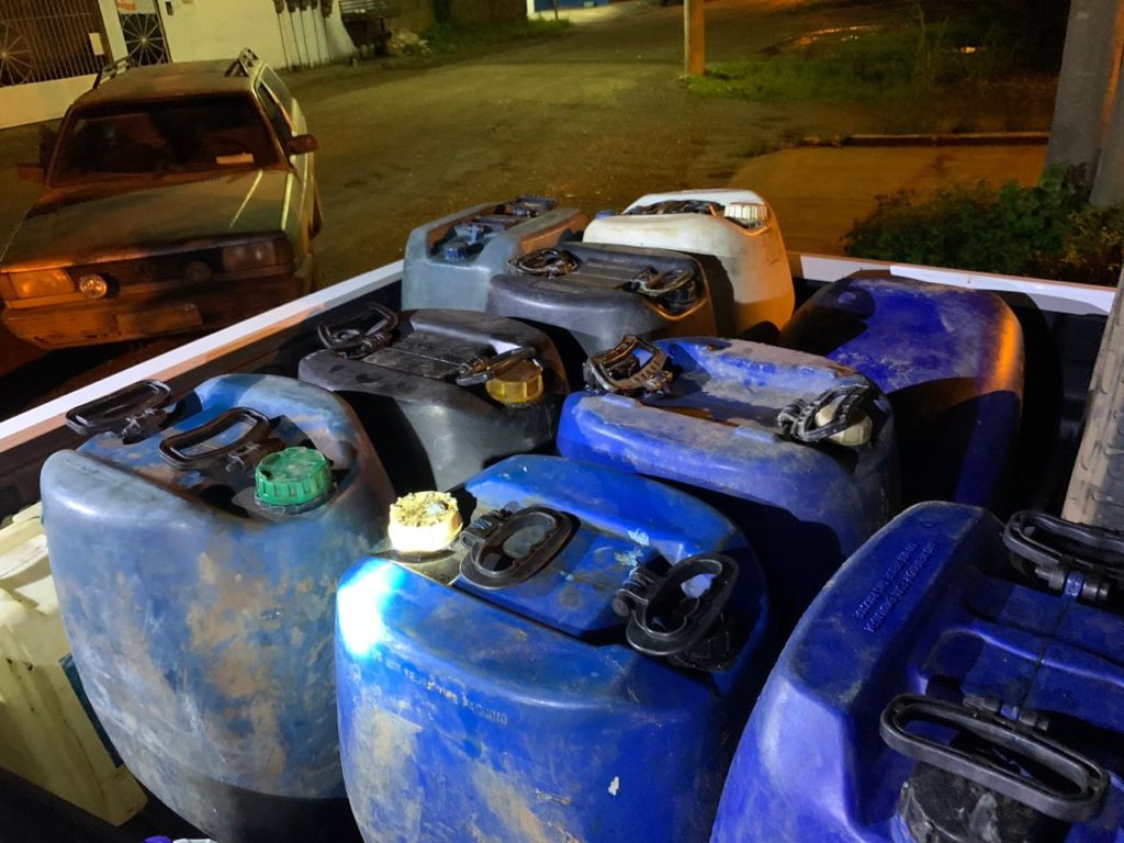 Os agentes relataram que fizeram uma busca pelo local, encontrando outros nove tonéis vazios, com capacidade para 60 litros. Ainda segundo os agentes, os homens negaram que estariam tentando furtar o combustível, e que só estavam parados ali por que o carro havia enguiçado.