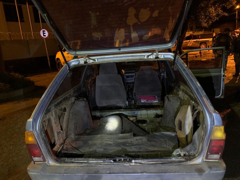Os agentes vigilantes da escolta armada de uma empresa de segurança, foram acionados para atender a ocorrência. Os homens estavam com um veículo, modelo Parati Surf, de cor azul, cujo banco traseiro havia sido removido, dando lugar para quatro tonéis vazios.