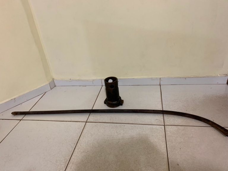 Além disso, foi encontrado no carro ainda uma alavanca de aço e uma chave de metal improvisada, que possivelmente seria usada para abrir a tampa do tanque de combustível da locomotiva.