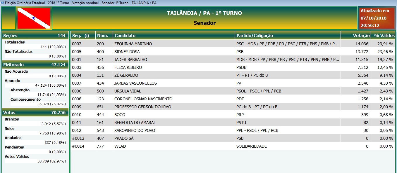 Veja o resultado da votação em Tailândia para senador. (foto: TSE)