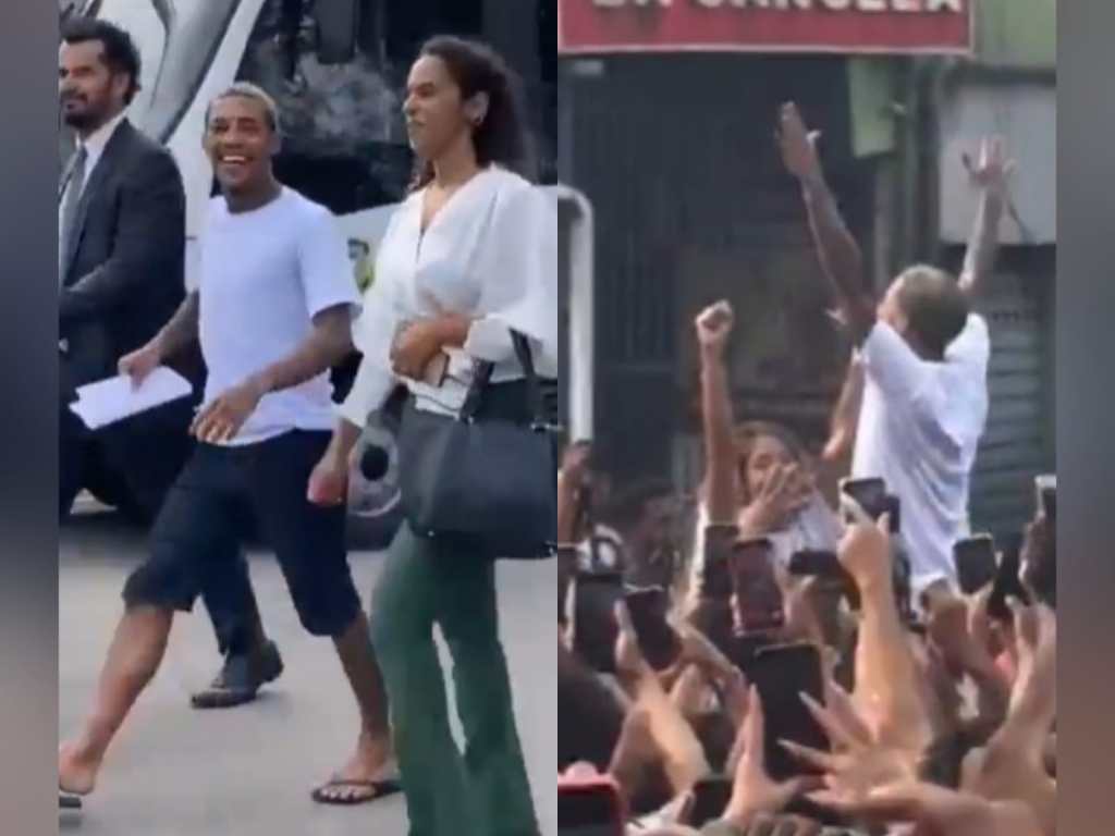 O mc deixou a prisão usando o “kit penitenciário”, composto por bermuda, camiseta e chinelo. Do lado de fora, centenas de fãs, amigos de profissão e familiares aguardavam o funkeiro.