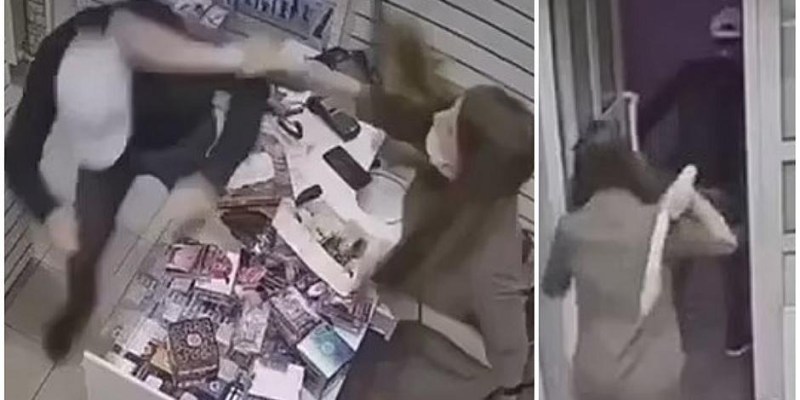 A tentativa de assalto foi registrada pelo circuito interno de segurança da loja e viralizou nas redes sociais.