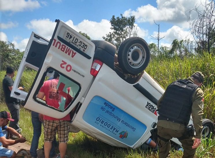 Na manhã desta terça-feira (18), uma ambulância do município de Mãe do Rio, nordeste paraense, que estava transportando pacientes para Belém, capotou na rodovia BR-316, próximo ao município de Castanhal.