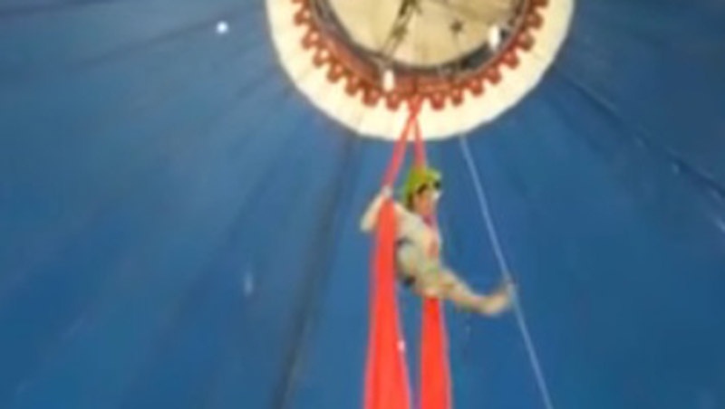 Uma acrobata caiu enquanto fazia acrobacias em tecido, na tarde desta quinta-feira (28), em Capanema, nordeste paraense, quando despencou no chão.