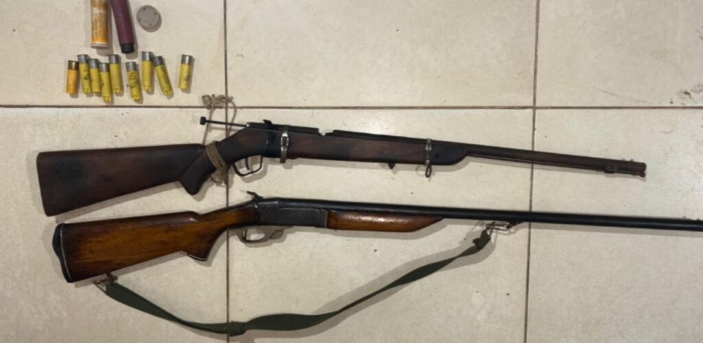 Durante a vistoria, os policiais também apreenderam duas armas de fogo: uma espingarda artesanal e uma espingarda calibre 20, além de três munições e seis munições recarregáveis. O suspeito confirmou ser o proprietário das armas.