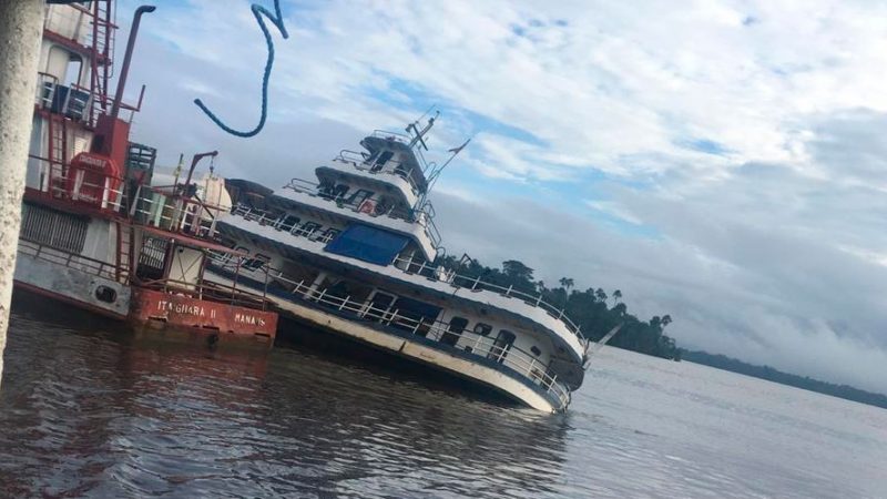 O empurrador de uma balsa afundou parcialmente no início da manhã desta quinta-feira (2) após sair do Porto do Arapari, em Barcarena, nordeste paraense, com destino a Belém.
