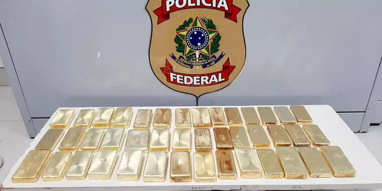 Barras de ouro pesando cerca de 47 kg, que foram apreendidas em Manaus, no estado do Amazonas, foram extraídas em minas no Pará. Segundo a Polícia Federal, o ouro estava em uma aeronave, escondida dentro de uma mala. Dois homens, identificados como Lucas de Oliveira Cruz, de 24 anos, e Benilde Melo Rodrigues, de 26 anos, foram presos no último sábado (9), na avenida das Torres, por transportarem a carga.