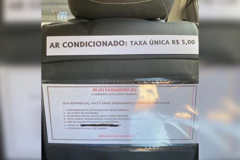 Uma publicação viralizou nas redes sociais, na manhã desta terça-feira, 9, em Belém, após uma jovem identificada como Bruna Sampaio solicitar um carro de aplicativo e, ao entrar no veículo, se deparar com um aviso de que teria de pagar uma taxa R$ 5 caso quisesse ter o ar-condicionado do automóvel ligado durante a viagem.