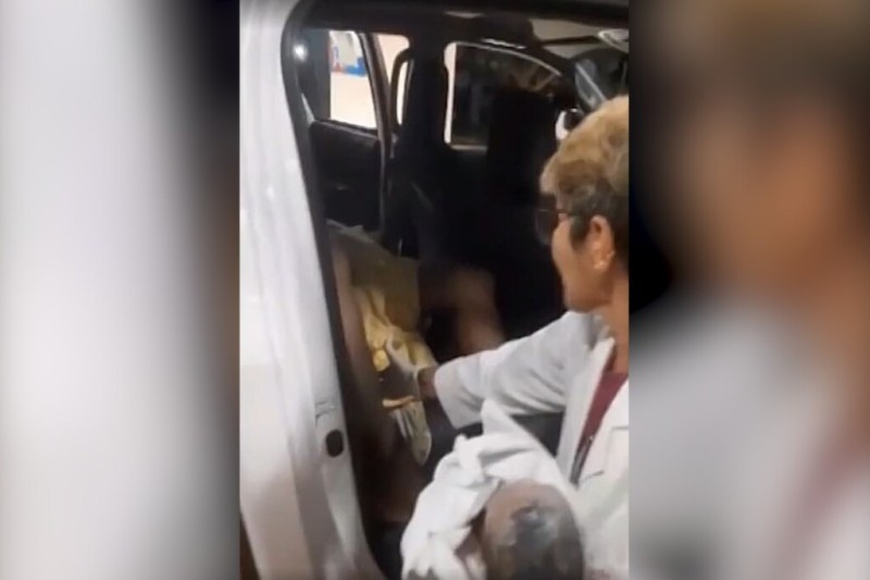Um vídeo que circula por aplicativos de mensagens, mostra o momento após o parto, quando os policiais, a mãe e a criança chegam na Santa Casa de Misericórdia. A mulher ainda está na viatura e uma médica segura a criança no colo.