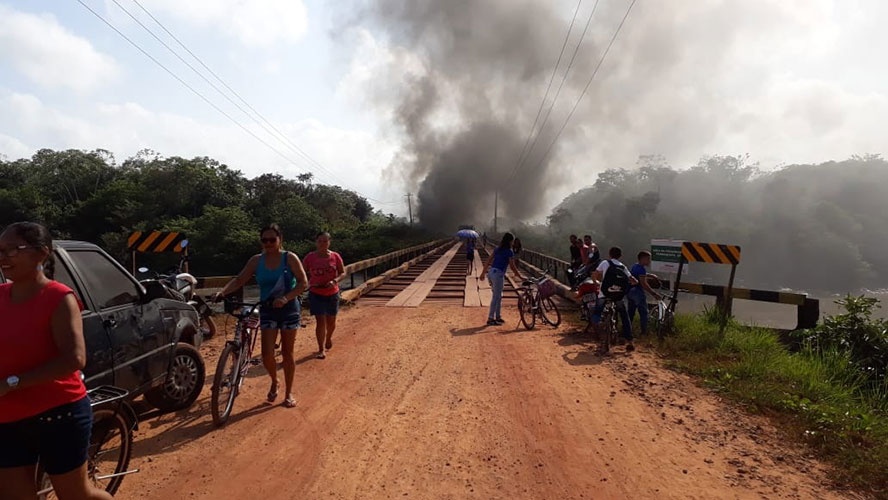 No protesto, e como forma de interromper o fluxo de veículos, para chamar a atenção das autoridades, são utilizados objetos como pneus e pedaços de árvores que estão sendo queimados. O protesto fica próximo a uma ponte.