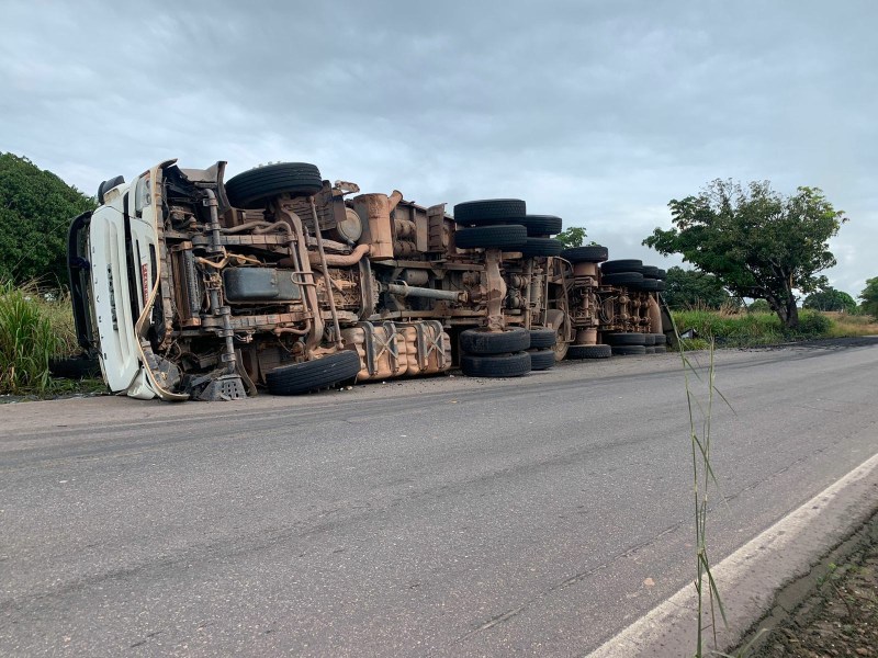De acordo com populares, o caminhoneiro saiu da pista e ao tentar voltar, capotou o veículo.