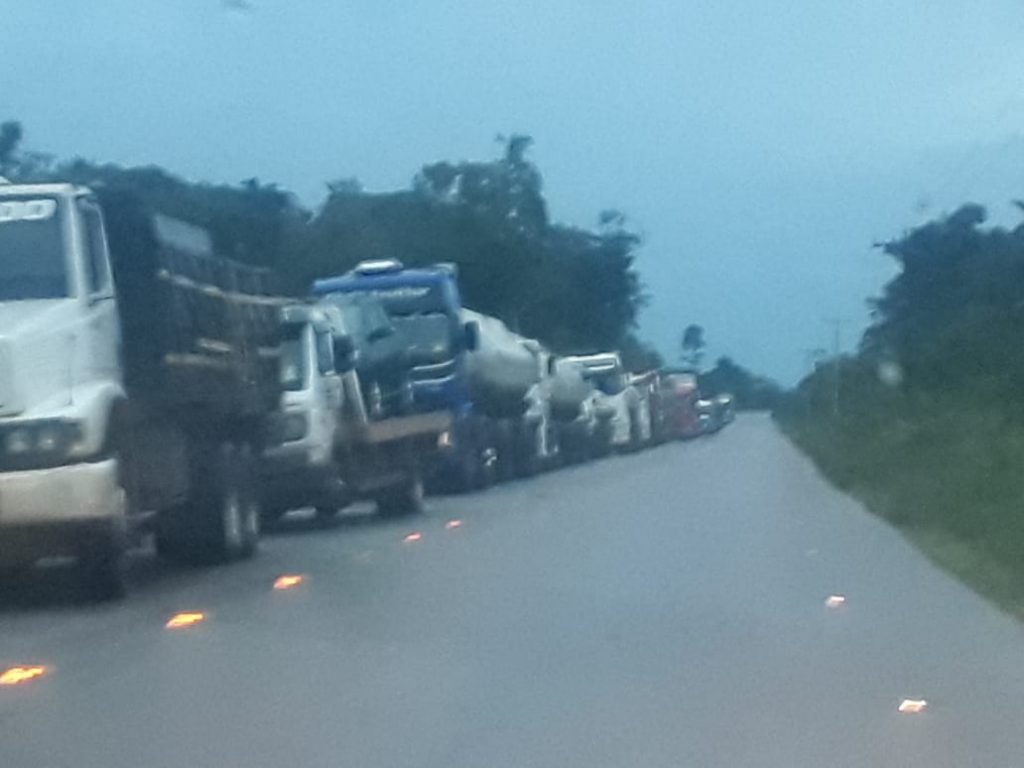 Caminhoneiros bloquearam no fim da tarde desta quinta-feira (25), trecho da rodovia PA-252, que liga a cidade de Moju à Alça Viária, via Perna Sul, no município de Acará.