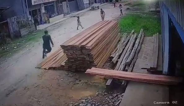 Segundo o Conselho Tutelar, o caso foi por volta das 17h, na avenida Anajás, bairro Cidade Nova, periferia de Breves. Em imagens feitas por uma câmera de segurança, é possível ver que a menina brincava próximo de um estabelecimento que parece ser uma estância, enquanto uma carga de madeira é manipulada. (Reprodução)
