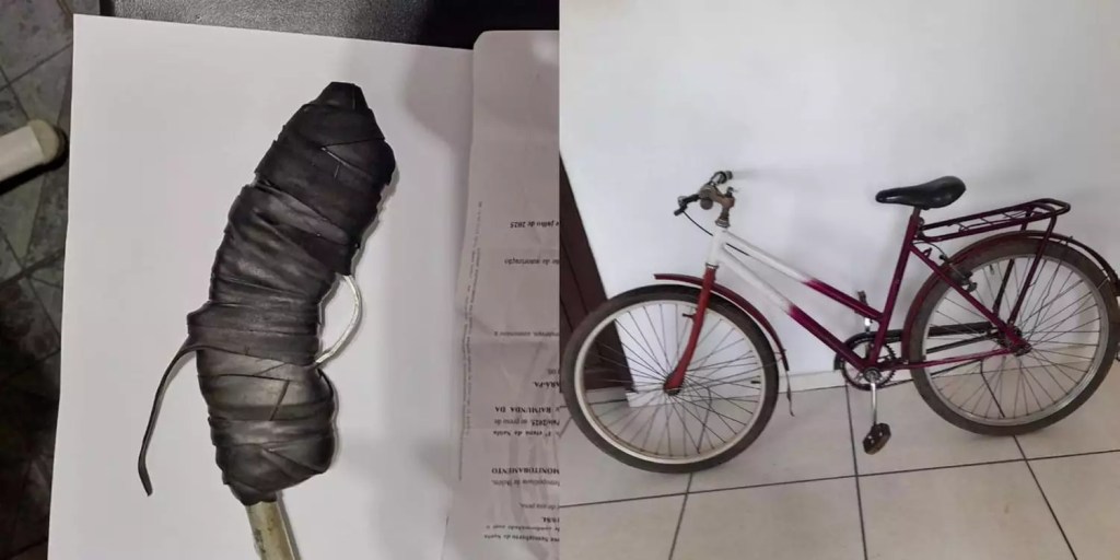 Ainda segundo a PM, o suspeito estava com um simulacro em mãos quando adentrou no imóvel, subtraiu o celular da vítima e uma bicicleta. Em seguida, ainda conforme as autoridades, o suspeito a obrigou a ficar sem roupas, passou a tocá-la e fotografou tudo com o celular da mulher.