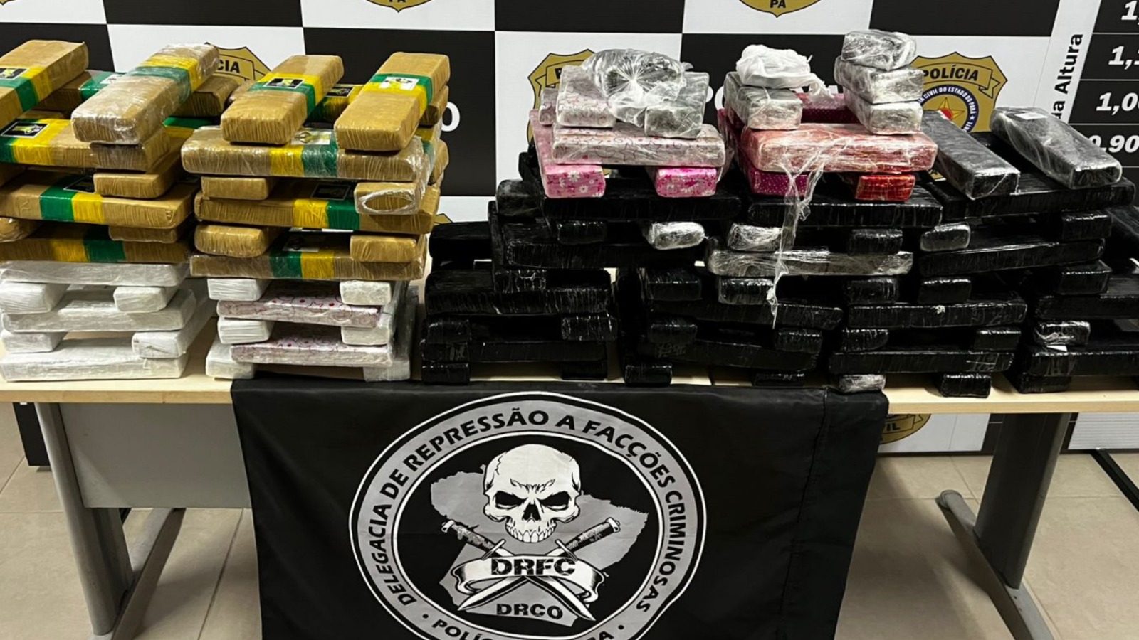 “Além dos entorpecentes, foi realizada a prisão em flagrante de dois suspeitos por tráfico de drogas, que estavam habituados a realizar o transporte de drogas para o Pará”, explicou Breno Ruffeil, titular da DRFC.