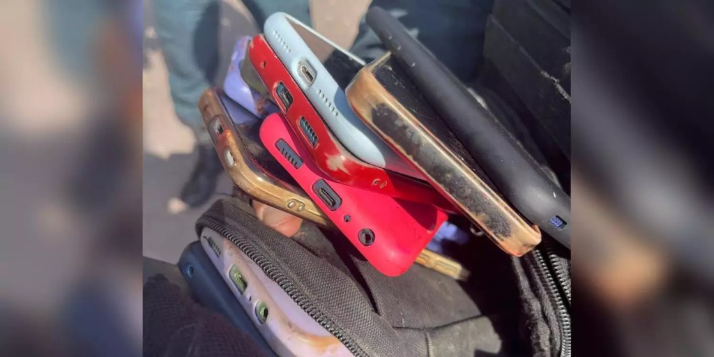 A imagem mostra celulares que a Polícia Militar apreendeu com os suspeitos ao fim do confronto. (Foto: Reprodução | Redes sociais)