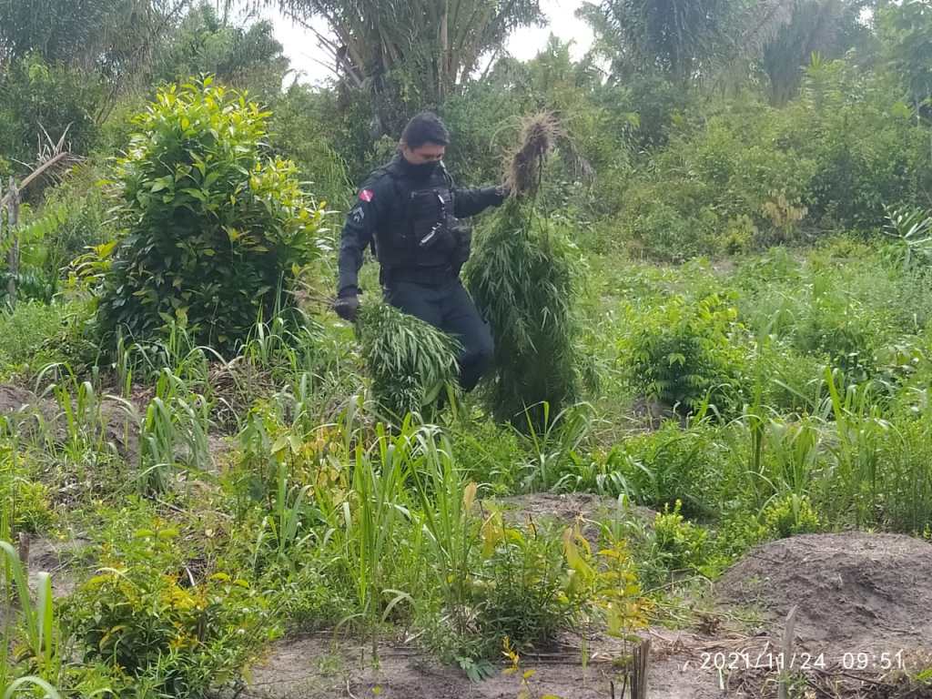 Mais de 1200 pés de maconha, duas armas de fogo e uma motocicleta roubada foram apreendidas durante uma operação realizada pelo 5º Batalhão de Polícia Militar (5º BPM), que resultou na prisão de dois suspeitos, na manhã desta quarta-feira (24), na zona rural de Marapanim, município localizado no Nordeste do Estado.
