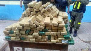 Chegando ao local, a PM encontrou o veículo e sua carga ilegal: 173 tabletes de maconha, cada um pesando cerca de 800 gramas. O motorista já tinha fugido, deixando a carga para trás. Após incursões na margem da rodovia, grande parte do contrabando foi recuperada, onde o criminoso tinha tentado esconder.
