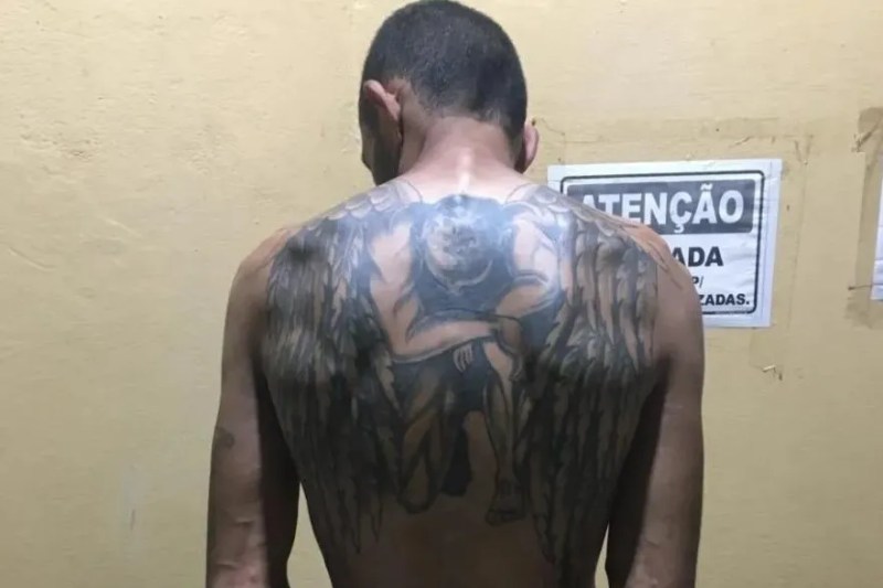 Polícia Militar da cidade de Uruará, sudoeste do Pará, prendeu na última sexta-feira (30), o criminoso identificado como “Arcanjo”, após realizar diversos furtos em vários estabelecimentos comerciais no centro do município. Imagem divulgada pela polícia mostra a tatuagem de um anjo nas costas do suspeito, identificado como Pablo, mas conhecido como “Arcanjo”. A Polícia Militar efetuou a prisão dele, pois estaria cometendo diversos furtos na cidade.