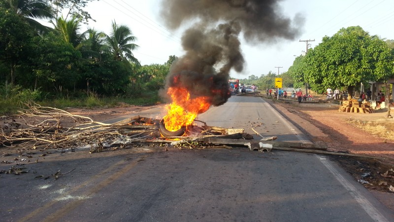 Moradores da comunidade Ateuázinho no município de Moju interditaram novamente a PA-150 que desde as 3hs da manhã ficou intrafegável. Os populares usaram toras, galhos e pneus. Na semana passada a PA já havia sido bloqueada pelos moradores.