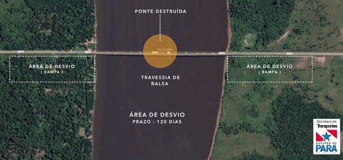 A Secretaria de Estado de Transportes do Pará (Setran) apresentou à imprensa, na noite do domingo (7), o projeto de restauração da ponte Rio Moju, que foi parcialmente destruída durante um choque com uma embarcação no último sábado (6). O projeto, elaborado pela Setran com a consultoria de dois especialistas, utilizará o sistema de estais – cabos de aço de sustentação – que reduzem número de pilares e, consequentemente, viabiliza a formação de distâncias maiores entre os pilares, o que facilita a navegação.