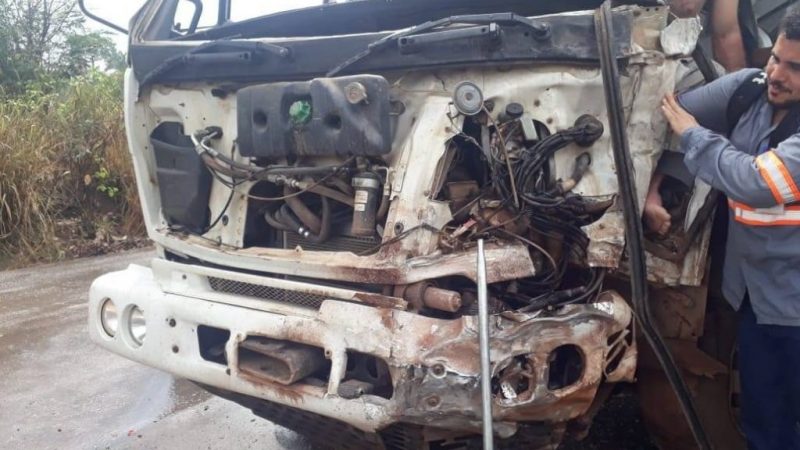 O ônibus transportava funcionários de um empresa, que presta serviços à mineradora Vale. O motorista de um dos veículos ficou preso nas ferragens.