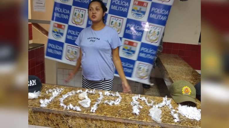 Durante buscas no local, a PM encontrou Alessandra Michele da Silva Oliveira, com 128 papelotes de maconha, 60 pedras de OXI e mais duas pedras maiores que pesaram 313 gramas.