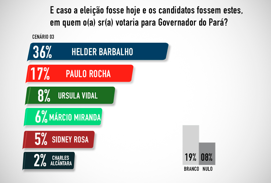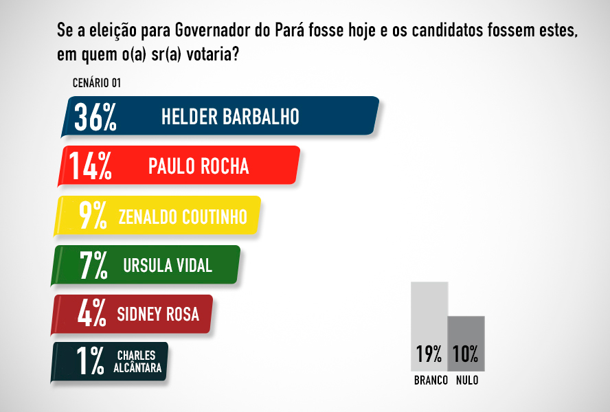 O Ministro da Integração Nacional, Helder Barbalho (PMDB), lidera pesquisa para corrida ao Governo do Pará, aponta pesquisa divulgada na sexta-feira (16), feita pelo IBOPE Inteligência. Em todas as três projeções para o Governo do Estado, Helder Barbalho lidera as intenções dos eleitores.